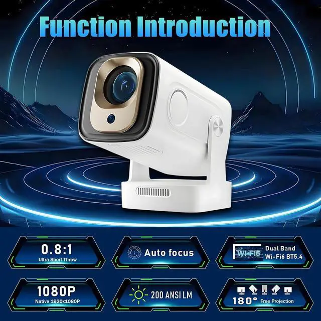 Short Throw & Auto Focus: With a short throw ratio of 0.8:1 and auto focus, this projector delivers a large, clear image even in small spaces, making it ideal for home theaters and office presentations.