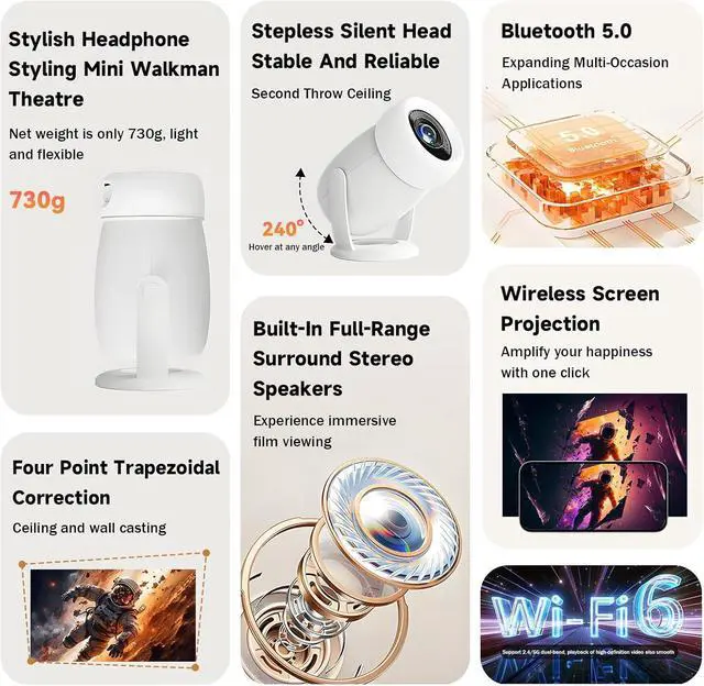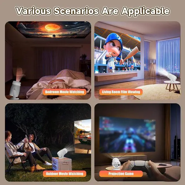 Multi-functional Design: The smart projector base comes with a 240° rotating bracket that you can adjust the projector in various directions, providing you with the best viewing angle