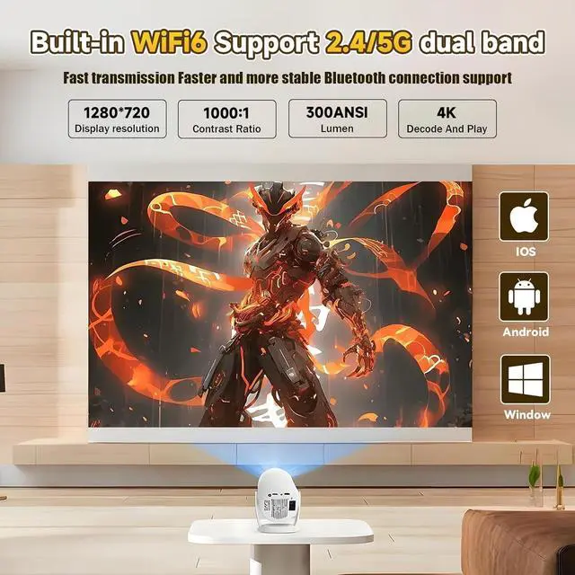Powerful Performance: Equipped with a robust processor for seamless multitasking, this projector supports smooth app performance for video conferencing tools. The 8GB internal storage provides ample space for apps, media files, and firmware updates