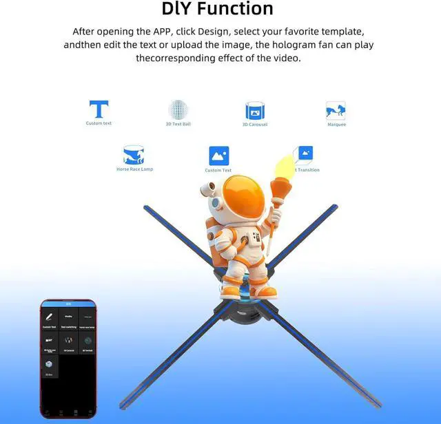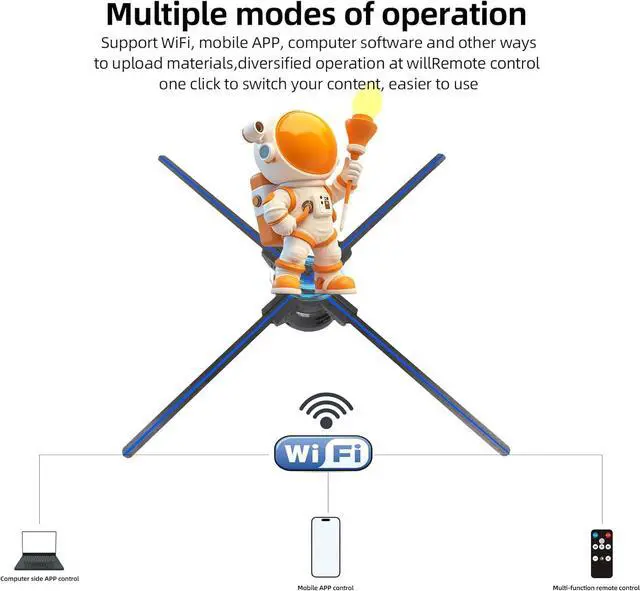 Seamless Content Management With Holographic Advanced 3d Display Our 3dHologramFan Features Cutting-Edge Technology That Allows You To Change Content On The Fly Using A Smartphone Or Computer Via Wifi. The App'S Compatibility With Android And Ios Ensures A Smooth Experience. Additionally, The Fan Comes With A Remote Control For Easy On/Off And Video Sequence Management. Whether For Business Or Pleasure, Our 3dHologramFan Is Your Gateway To Impressive, Engaging Displays.
