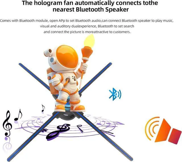 Immersive Audiovisual Experience With Bluetooth Capability The 3dHologramfan 27.5" 3d Fan Not Only Displays Visuals But Also Supports Bluetooth For Sound Connectivity. Pair It With Speakers To Synchronize Audio With Your 3d Visuals For An Immersive Experience. Perfect For Creating A Stunning Atmosphere At Any Event, Making Viewers Feel Like They'Re Part Of The Action.