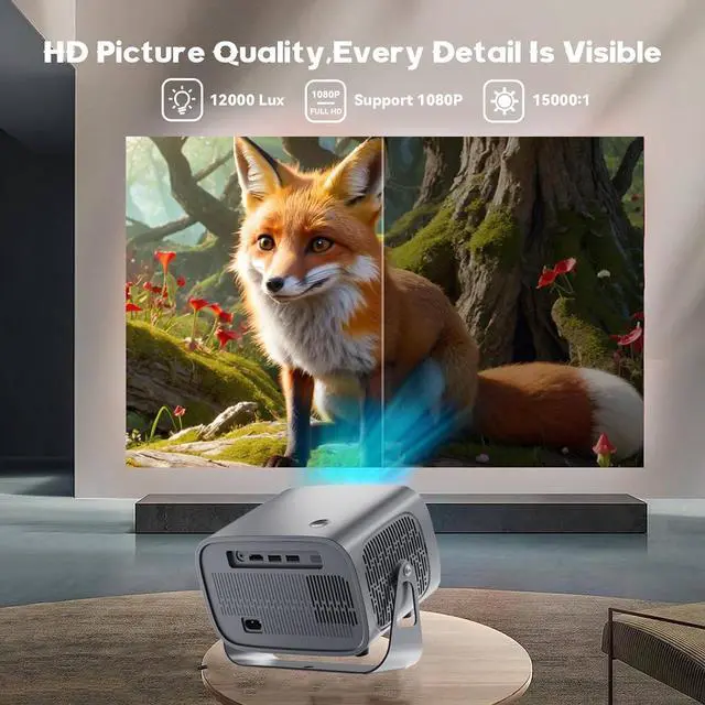 Powerful Android 11 OS & low noise cooling systemThis bluetooth projector runs on Android 11 Smart OS, offering over 4,000 applications, you can access all kinds of entertainment content. Whether it's popular TV dramas, games, or online courses, it can easily meet your diverse entertainment and learning needs. Meanwhile, it is equipped with a silent cooling system with an operating noise of less than 35 decibels, it ensures that you can enjoy the projection time in a quiet environment. Whether it's for a family movie - watching or a business presentation, you won't be disturbed by noise