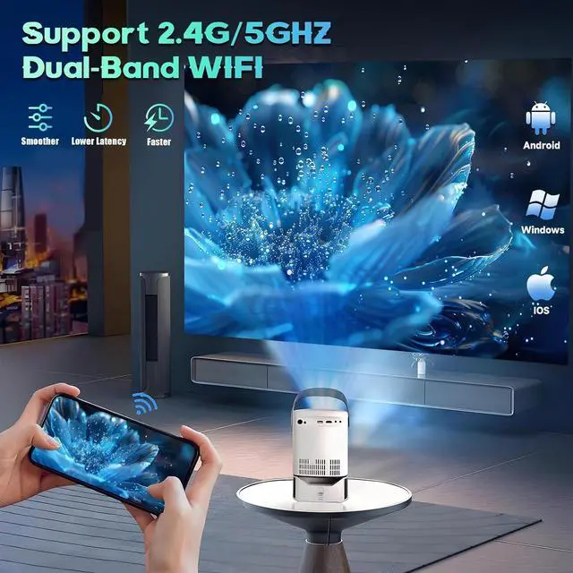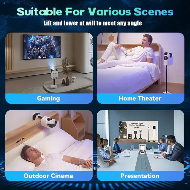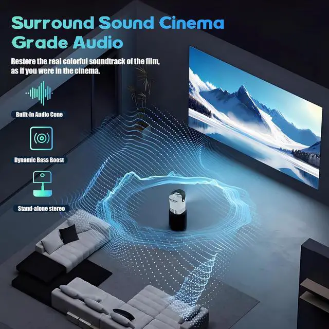 Electric Focus Function&Low Noise: This smart projector adopts electric focus function, which is superior to other manual focus products on the market. Advanced cooling system reduces noise and brings you a more comfortable projection experience