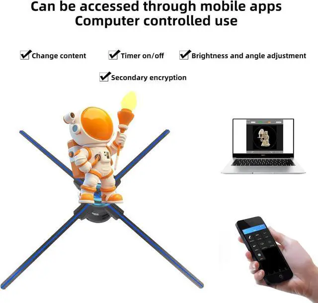 Seamless Content Management With holographic'S Advanced 3d Display Our 3dHologramFan Features Cutting-Edge Technology That Allows You To Change Content On The Fly Using A Smartphone Or Computer Via Wifi. The App'S Compatibility With Android And Ios Ensures A Smooth Experience. Additionally, The Fan Comes With A Remote Control For Easy On/Off And Video Sequence Management. Whether For Business Or Pleasure, Our 3dHologramFan Is Your Gateway To Impressive, Engaging Displays