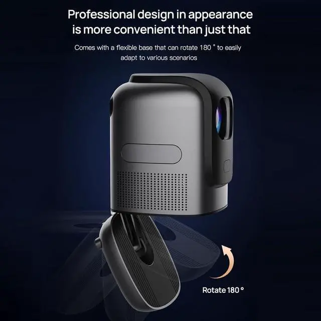 Flexible and Multi-Angle ProjectionWith a unique 180-degree flip base, this projector provides an exceptional level of flexibility for your viewing experience. Whether you choose to mount it on the wall or tilt it for an upward projection, this projector adapts to your specific needs. This versatile functionality makes it suitable for a variety of viewing scenarios, from home theaters to professional prntations.