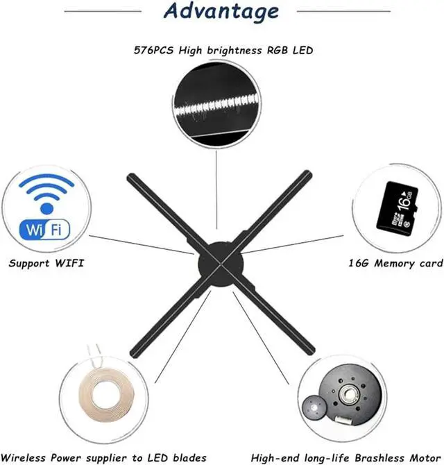 20.47in 576Pcs LED Advertising logo Lamp Wifi 3D LED Naked Eye Holographic Fan 3D Remote Hologram Player Holographic Imaging Lamp