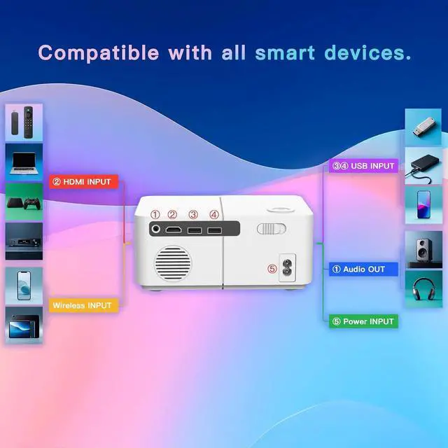 Immerse yourself in stunning 1080p FHD resolution with 4K support on this mini projector. Experience crystal-clear visuals on a screen up to 200 inches.