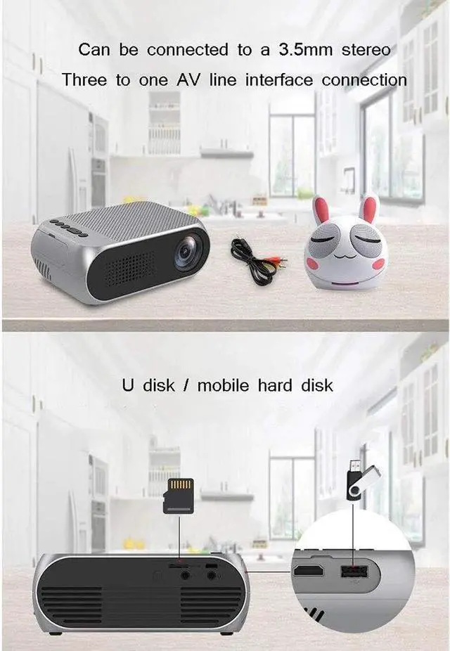 [Universal Connection]: This projector supports 3.5mm HDMI/USB/VGA/AV/Micro SD card/Audio output port. HDMI and USB port design make it easier to connect laptops, Blu-ray Disc players, game consoles or streaming devices. Great for family entertainment.