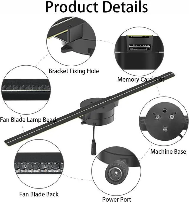 224 LED Light Beads: 3D Hologram Fan Wifi Projector Is Made of 224 Professional HD LED Beads That Emit Amazing Light and Incredible Images. Ideal for Businesses, Stores, Parties, Bars and More.