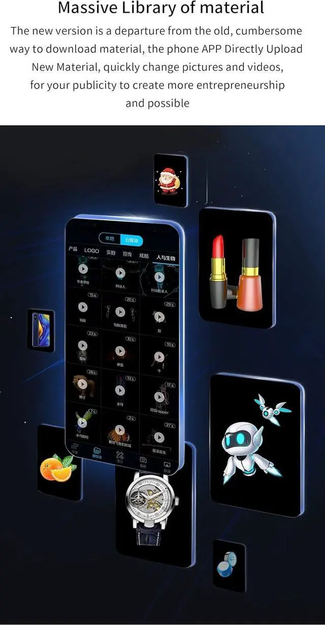 Audio Playback:The phone app directly upload new material, quickly change pictures and videos, for your publicity to create more entrepreneurship and possible.