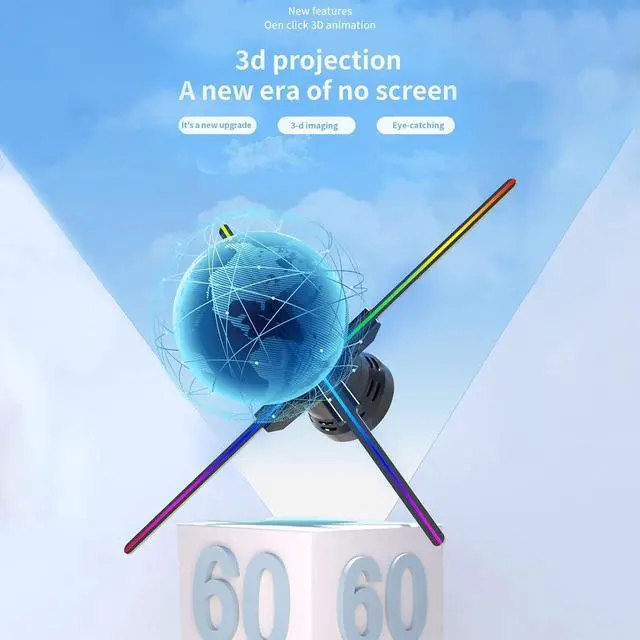 Ultra-high-density 720 LED four-axis rotating imaging, showing naked-eye high-definition 3D visual effects. It supports most video formats, animation and 3D text image display.