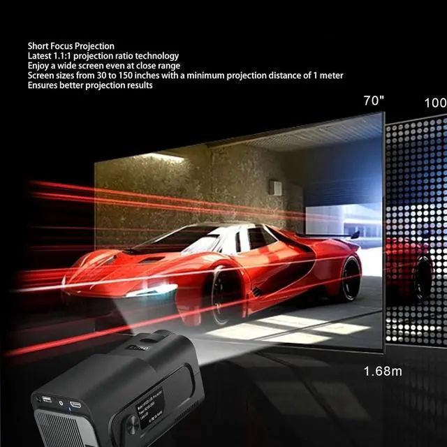 [Short Focus Projection] With the latest 1.1: 1 projection ratio technology, you can enjoy a wide screen even at close range, with a maximum screen size of 150 inches and a minimum projection distance of 1 meter, ensuring better projection effects.