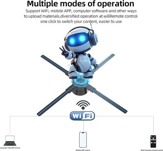 Revolutionize Your Displays With Holographic'S 18.1" Led Holographic Fan Step Into The Future Of Advertising With The 3dHologramfan 18.1" Led Holographic Fan, Featuring 510 High-Brightness Leds For Unmatched Clarity And Color Accuracy. Easily Update Your Content Via Our App, Available For Both Android And Ios Devices. The Remote Control And Bluetooth Capabilities Make It Simple To Synchronize Sound And Visuals, Enhancing Any Festival, Trade Show, Or Exhibition Hall Presentation.