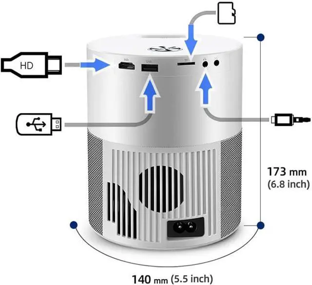 More Function, More Happiness, Native 1080P-- Real, Sharp, Colorful. 200' Large Projection Picture--Create Your Home Theater. Plugs & Play--Multiple Port For Your Different Devices, Entertainment becomes so easy. Speaker--Enjoy No Only Movies, But Also Music.