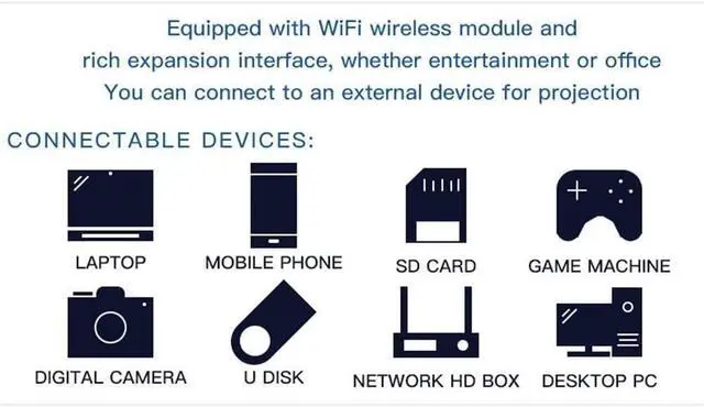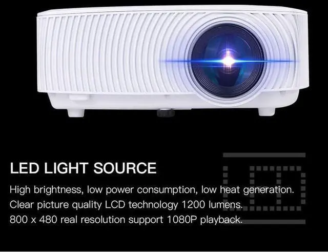 adjustable 35-120 inches, projection screen 16:9, contrast ratio 1600:1, restore the most realistic color, original resolution 800*480P, support 1080P, ±15 ler technology, shocking 3D effect, Bring a fantastic movie experience to your 120-inch large screen inch.