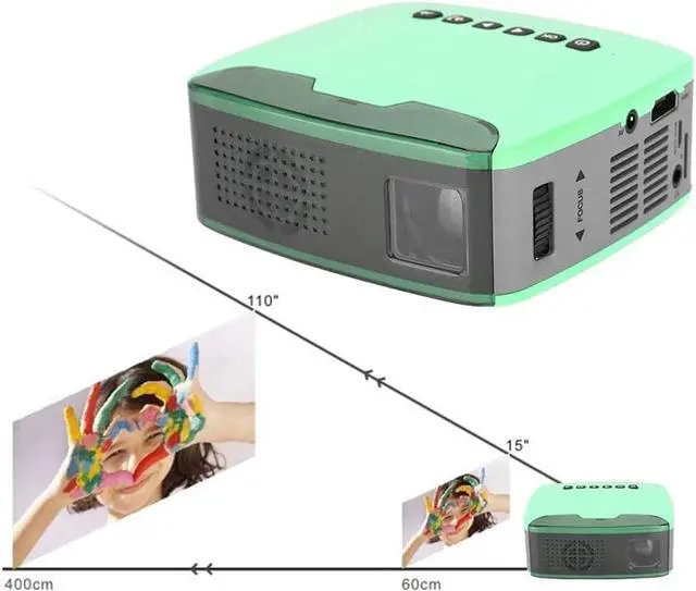 Support HD Displaying:Support HPdisplay, allows you to enjoy clear and natural images and videos in a large screen.delivers stunning true color presentations, stands out in abundant color and details displaying.Best Viewing Experience: Supports for manually adjusting focus, you can freely adjust the aspect ratio from 16 : 9 to 4 : 3, and allows up to 0.6-4 meters projection distance.