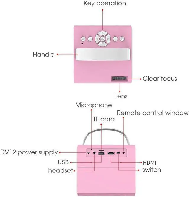Mini Private Home Theater:This Mini LED Projector is perfectly suitable for outdoor recreation, entertainment venues and home theaters. Small and portable design makes it easy to carry for travel, allows you to enjoy movies, videos, games in dark environment, no matter at home or outside for courtyard, travel, camping, etc.