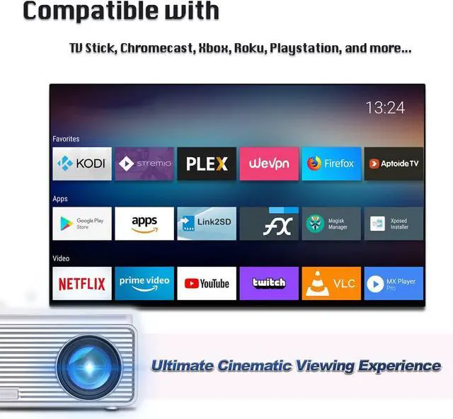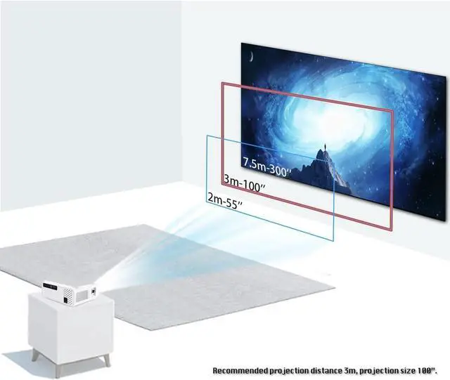 NATIVE 1080P: Native 1080p with 4K Supported, the projector delivers super clear image quality, up to 300 inch display, brings immersive cinema experience. It also supports 4K video input when connecting with PC or 4K TV Stick via HDMI connection.