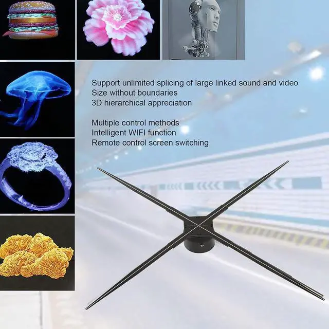Widely Applicable: This holographic projection fan is suitable for shopping malls, hotel KTVs, high speed railway airport banks, science and technology exhibition halls, convention and exhibition centers, etc.