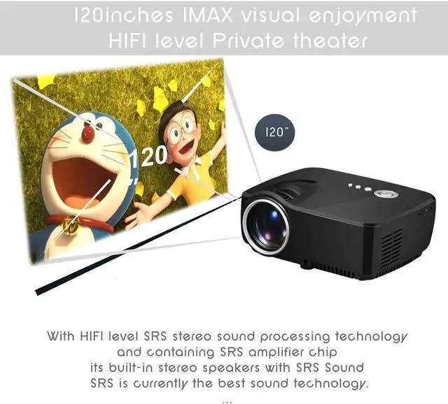 FULL HD PROJECTOR:Video Projector is equipped with native 800x480 resolution, Support Resolution 1080p, 1000:1 contrast ratio and 30,000 Hours lamp life. 1200 Lumens video projector meets all audio-visual satisfactions for home entertainment.