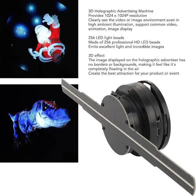 3D HOLOGRAPHIC ADVERTISING MACHINE: 3D hologram fan provides 1024 x 1024P resolution, even in high ambient illumination, you can see the video or image environment clearly, support common video, animation, image display.