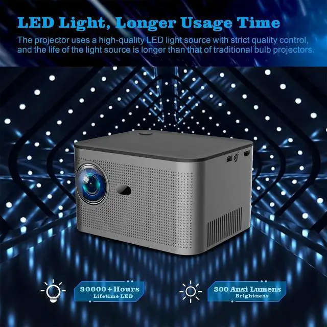 300 ANSI Lumens, 30,000 Hours Lamp LifeThe ANSI Lumens of this high resolution projector is 300 ANSI, about like 12000 lumens brightness.