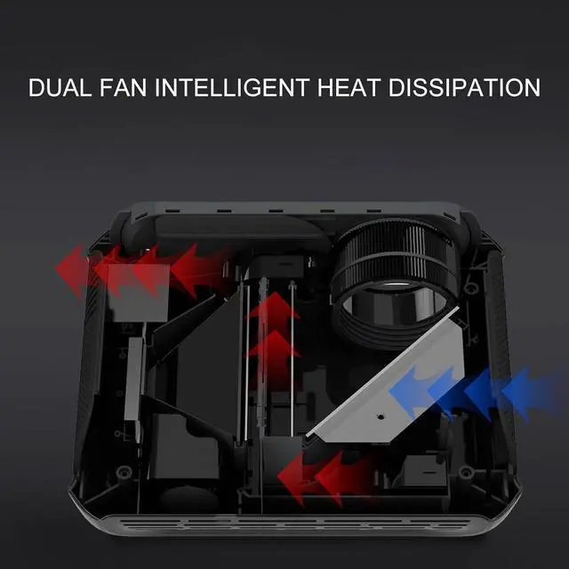 Quiet and Reliable: The dual eddy current silent fan ensures low noise operation while effectively dissipating heat, allowing the projector to work flawlessly even in high-temperature environments.
