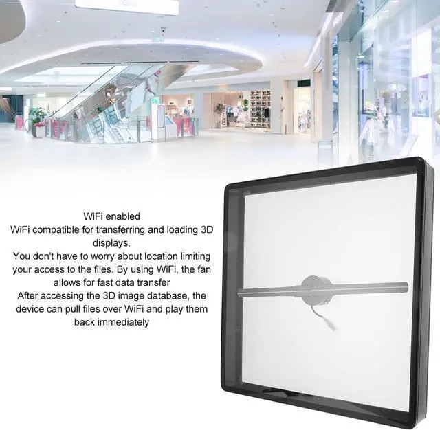 WIFI SUPPORT: 3D hologram fan is compatible with WiFi to transmit and load 3D displays. You don't have to worry about location limiting your access to the files. By using WiFi, the fan allows fast data transfer. After accessing the 3D image database, the device can pull files over WiFi and play them immediately.