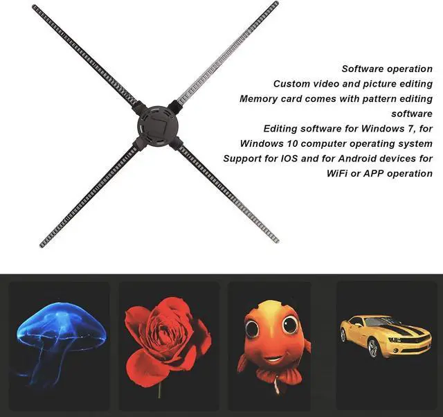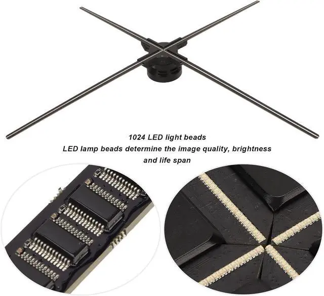 SUPERIOR LED BEADS Portable 3D advertising holographic display fan has 1024 LED Beads, which determine the image texture, brightness and life. Adopt four leaf design.