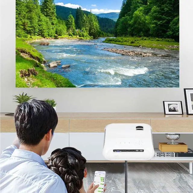 WIDE APPLICATION: Home theater movie projector can enjoy online videos, movies, music, playing games, etc. without a TV stick, suitable for family use, office meetings, out camping, parties, etc.