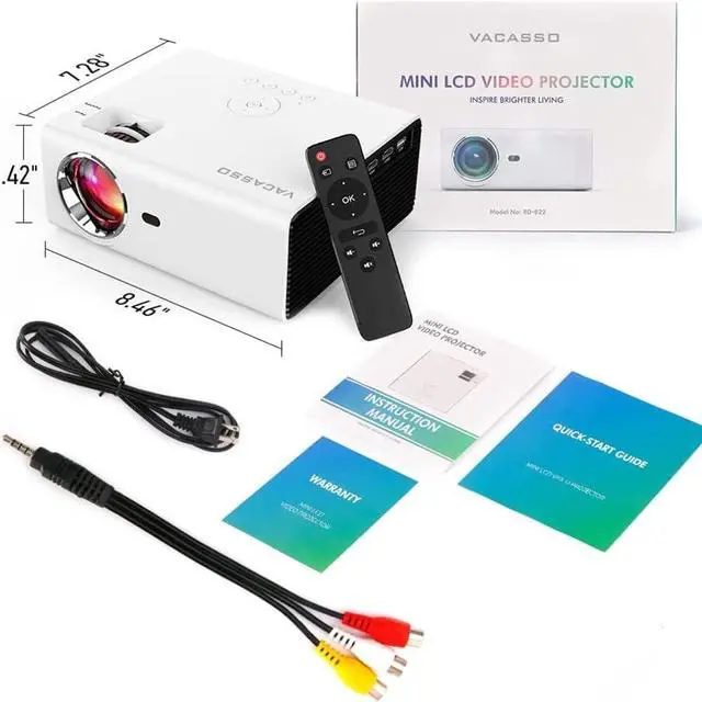 Comprehensive Connectivity:Easily connect with the portable projector through HDMI, USB, AV (RCA) port, and USB flash drives. Also, you could hook it up to an external speaker as it comes with a standard 3.5mm audio jack. (HDMI cable and mini AV to 3 RCA adapter cable, remote control are included). Works with multimedia devices such as PC, laptops, MacBooks, PS4, PS5, X-Box, and TV Stick.