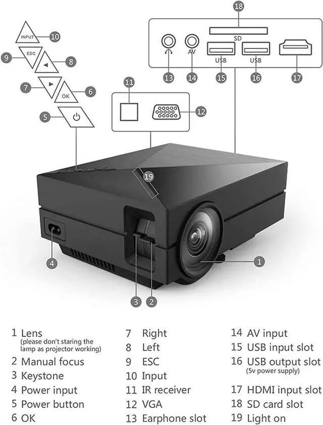LED mini projector is your private home theater. You can connect a PC/laptop/DVD player to enjoy videos, movies, TV series or football matches.