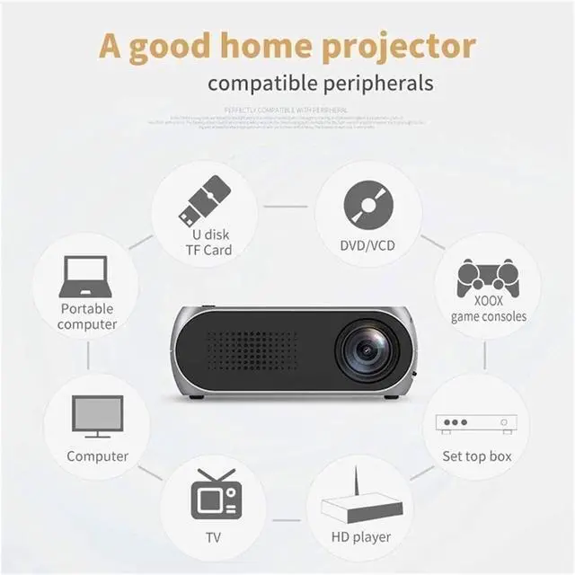 MULTIMEDIA compatible: Projector is suitable for playing videos, movies, TV series, photo sharing, sports games, etc.