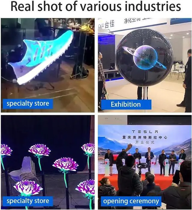 Small and portable The effect of 17.7 inches 4 leaves is more high-definition. The 3D holographic system can modify the hardware system and structure according to the existing building or installation location space, and can be permanently installed in various buildings and urban spaces.