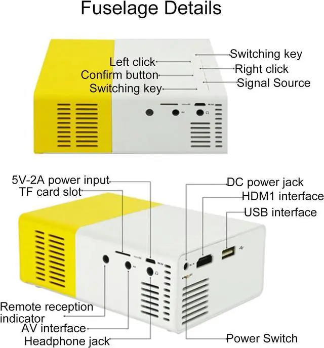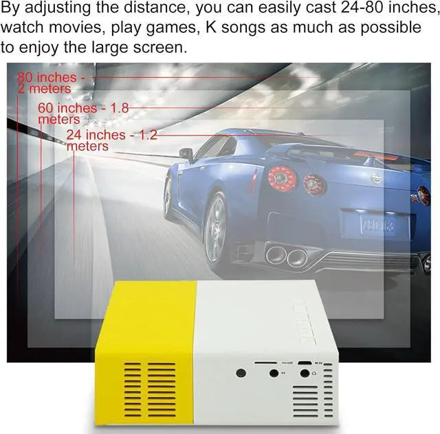 Big Screen & Built-in Speakers:The mini projector has a 24~80 inches projection display size with 1.2m to 2m projection distance. Built-in speakers offer excellent loud sound quality, you can also connect it to external speakers to meet your higher quality sound needs.