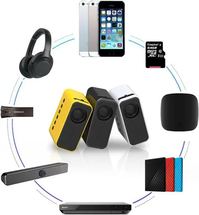 Small and light: The mini projector has a unique and elegant design with a size of 110*90*50mm. It is small and light. You can put it in your bag and take it out without any difficulty.