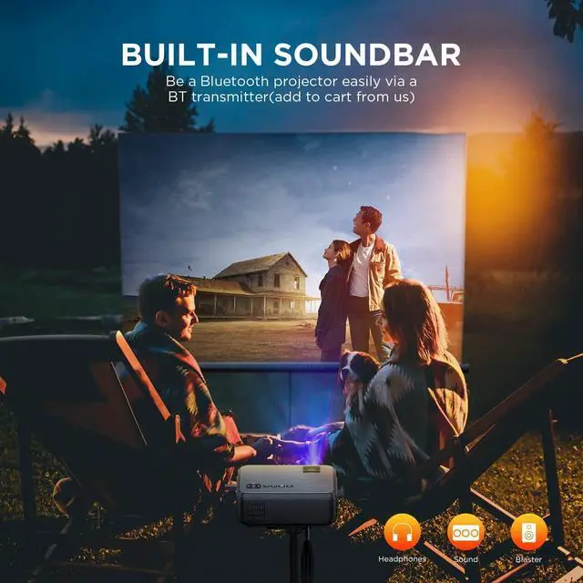 Ultimate Audiovisual Feast: Built-in HiFi stereo speakers and silent cooling system, reduce fan noise to restore every detail sound effect. Be a projector with Bluetooth and wifi to connect with an external soundbar via a little Bluetooth transmitter for a loud sound, an ultra-mini Bluetooth projector for iPhone, to provide an excellent auditory sense enjoyment.