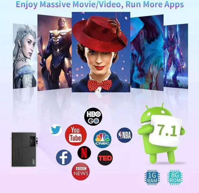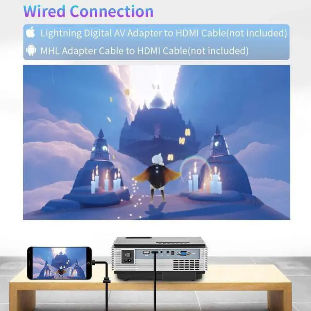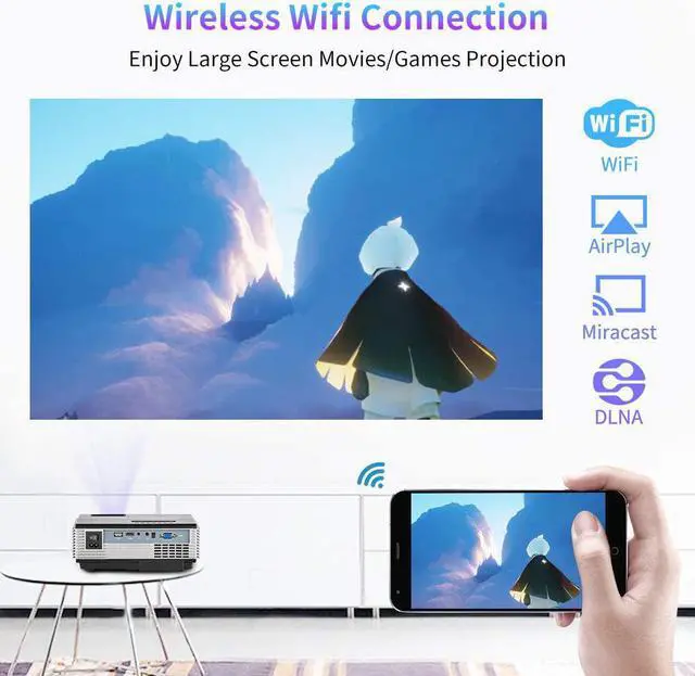 Portable Full HD Supported Small Home Theater Projector Carrying Smooth Android System, Support Wireless Wifi & Bluetooth Connection, Perfect for Indoor Outside Movie ProjectionAdvanced Screen Mirroring Feature & Bluetooth Pairing Technology