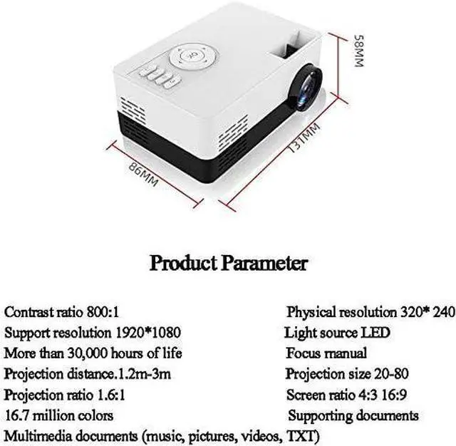 Small size large screen, adjustable 20~80 inches, easy to project large screen, larger screen, bring better entertainment experience