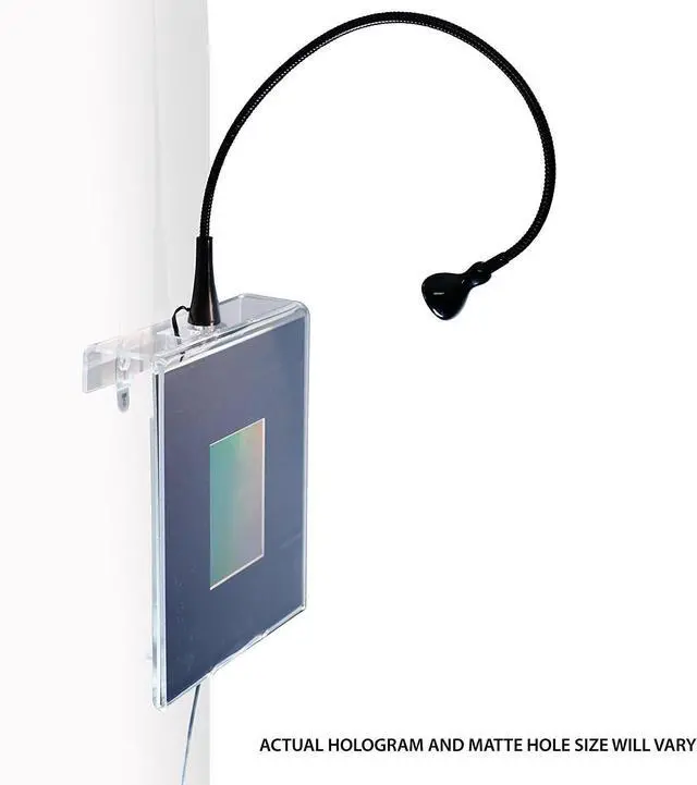 Holograms are spectacular, extremely realistic & 3D, and require a quality light at the correct angle to be seen properly. DIRECT SUNLIGHT (not in shadow or haze) is ideal. Holograms also show beautifully under a halogen or single bulb LED. FOR EASIEST & BEST DISPLAY please choose one of our LIGHTED VARIATIONS (above). We designed these self-contained desk & wall displays with a BUILT IN LIGHT to best show off our (easily interchangeable) holograms, making superb gifts. Unbox, plug in, be awed!