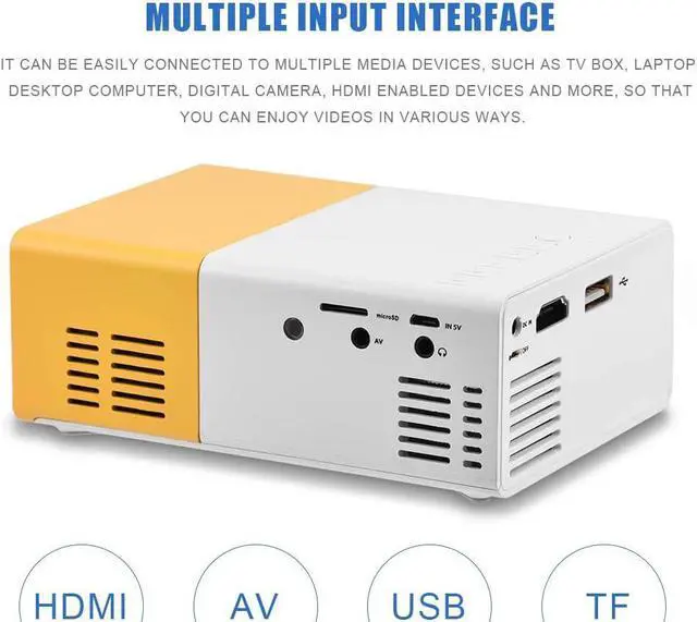 Multiple Input Interface: Support HDMI, AV, USB input, it can be easily connected to multiple media devices, such as TV box, laptop, desktop computer, digital camera, HDMI enabled devices and more, so that you can enjoy videos in various ways.