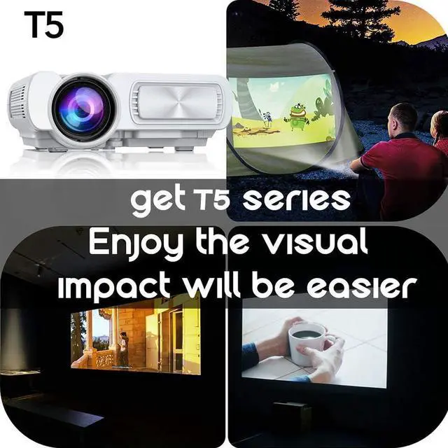 PORTABLE SIZE PROJECTOR: SeeYing T5 projectors comes with a portable size7.99*5.98*2.95inchand a weight of only 1.87lbs, which can be easily taken everywhere. Exclusive ultra high temperature and light transmittance LCD Panel Blu-ray boost technology offers a wider color range and offers large projection images for smaller rooms. (Recommended to use in dark environment)
