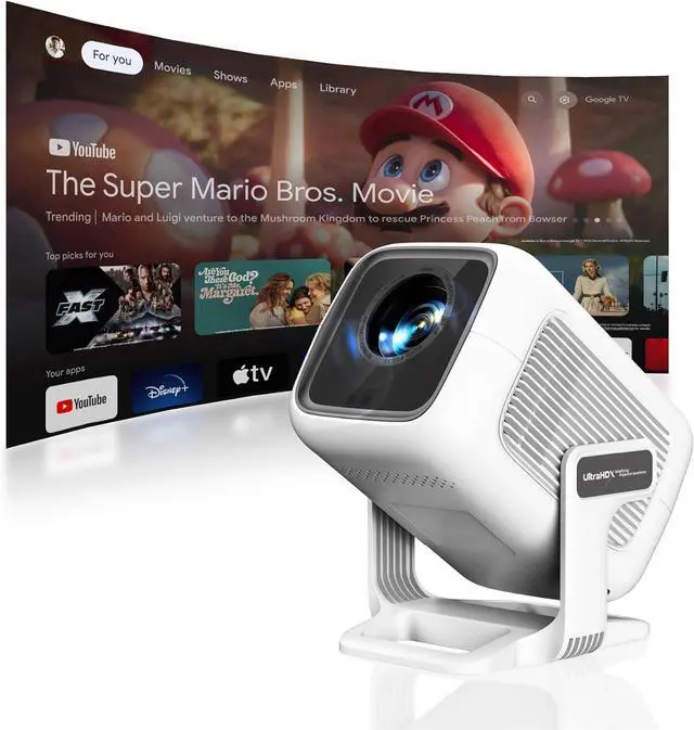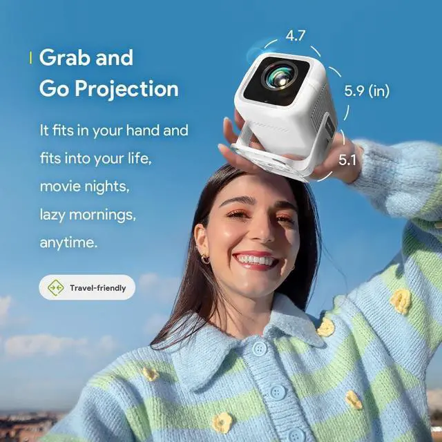 Watch Movies Anytime, Day or Night With 4K decoding and 300 ANSI lumens of true brightness, you dont have to wait until night to start the show. Its 1080P Full HD resolution delivers clear, vivid images even in bright rooms or on textured walls. Instantly connect your iPhone, Android device, USB, HDMI, or laptop, and enjoy a cinematic experience anytime, whether indoors or outdoors. This versatile projector makes it easy to bring big-screen entertainment wherever you go