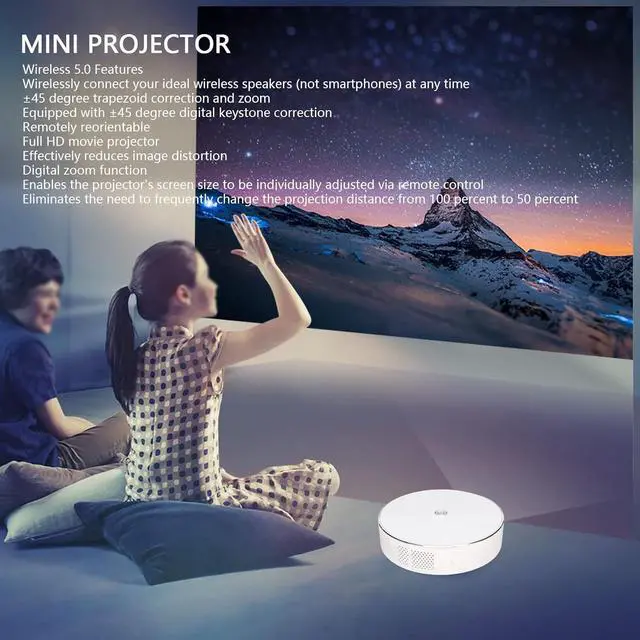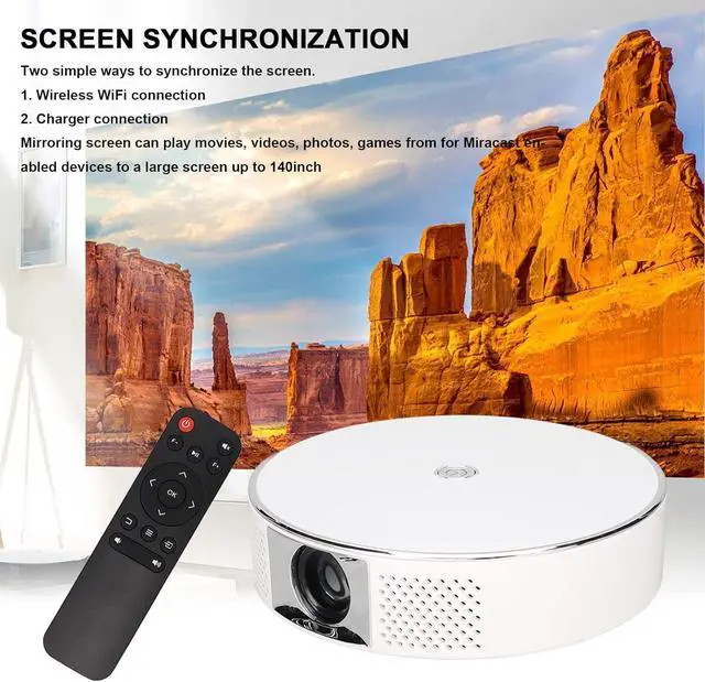 Same Screen: Small home movie projector has two simple ways to synchronize the screen, 1. connection, 2. charger connection. Mirror screen can play movies, videos, photos, games from devices that support for Miracast to a large screen of up to 140 inches. In addition, you can connect your ideal Bluetooth speaker (not smartphone) wirelessly at any time.