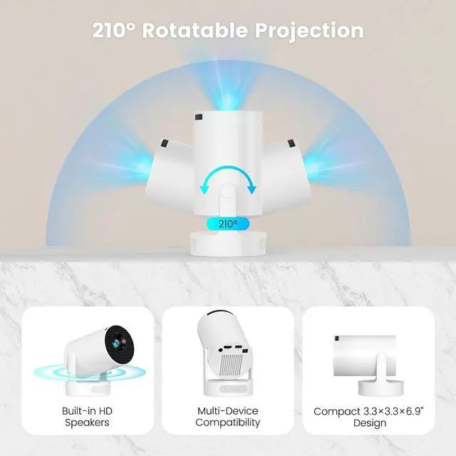 Dual Intelligent Correction & HiFi Sound QualityMini projector upgraded 5W Soundbase speakers, six-way auto keystone correction, TOF laser focus, 0.8 seconds flat screen. Bluetooth projector built-in DSP audio processor, 360° surround sound field is 25% larger than the previous generation, new night cinema mode intelligently adjusts the sound pressure, perfect for late-night viewing.
