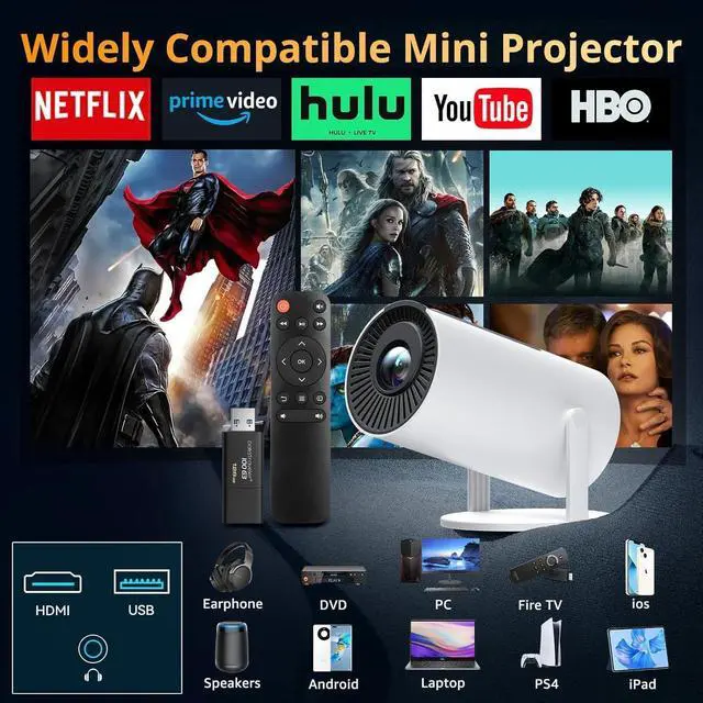 Compatible with Multiple Devices: Packed with ports including USB, HDMI, and Audio, this movie projector offers endless possibilities. Use it for streaming films, playing games, or connecting devices like a Roku projector for enhanced TV-like experiences. It's a versatile tv projector and phone projector that fits any scenario.
