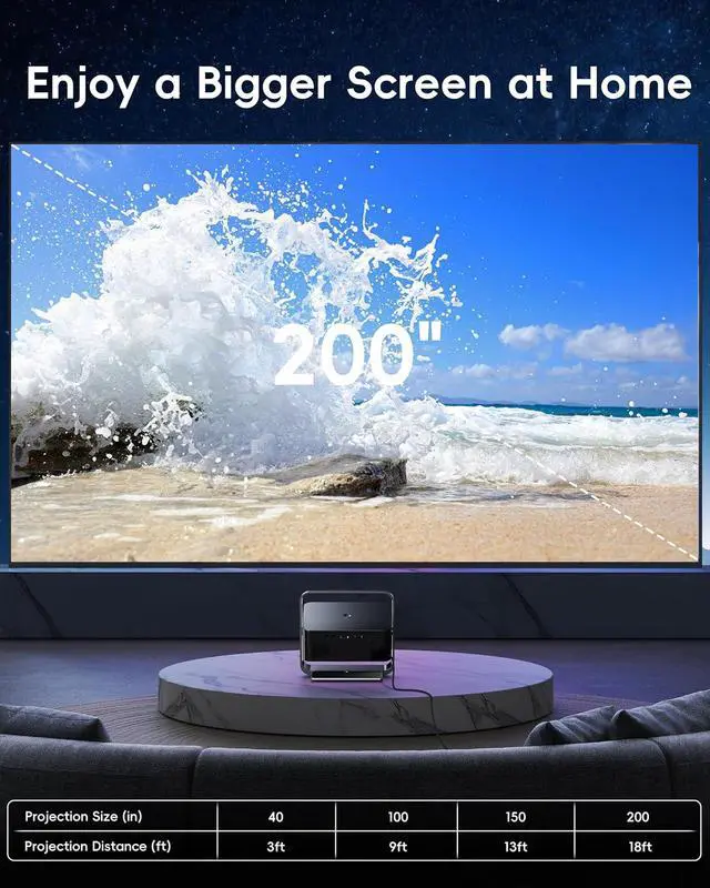 4K Enhancement & 1080P Native- Enjoy stunningly sharp and vibrant visuals with supported 4K content. This movie projector delivers a crisp native 1080P Full HD resolution, ensuring every detail pops off your wall or screen. No more settling for blurry, low-resolution images during your favorite films or games.