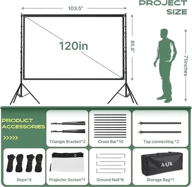 Premium Wrinkle-Free Material The AAJK projection screen is made of thick,elastic,and opaque polyester fiber,which can maintain smoothness even after folding or washing,ensuring a flawless viewing experience.