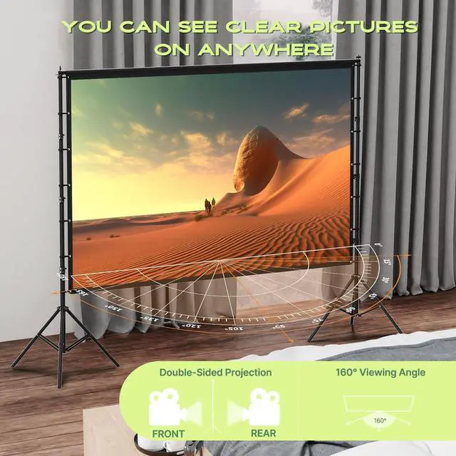Easy to Set upNo need for professional knowledge!Outdoor projection screens can be easily installed,quickly set up,and enjoyed in just a few minutes. The screen can be used alone or in combination with a stand for flexibility.