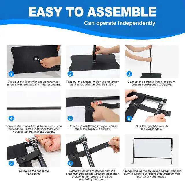 PORTABLE: Its holder comes with a convenient storage bag, what make it portable that you can take it anywhere. Its portability makes it ideal for a variety indoor or outdoor activities, such as home theater, camping trips, backyards, schools, churches, and so on.